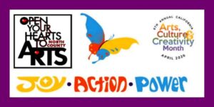 This April 2026, North County Arts Network has an annual Open Your Heart to North County Arts campaign. The promotion this year re-enforces the California for the Arts: April 2026 as Arts, Cultural and Creativity Month. The theme this year is Joy, Action and Power. We interpret this to mean that the Visual and Performing Arts comes from joy and that creates action that builds power in our communities.